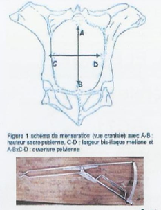La pelvimétrie est la mesure de l'ouverture pelvienne avec un pelvimètre. Sont mesurées, la hauteur sacro-pubienne et la largeur bis-illiaque médiane. La surface obtenue exprimée en centimètre carré donne l'OPEL (Ouverture PELvienne) en cm2.